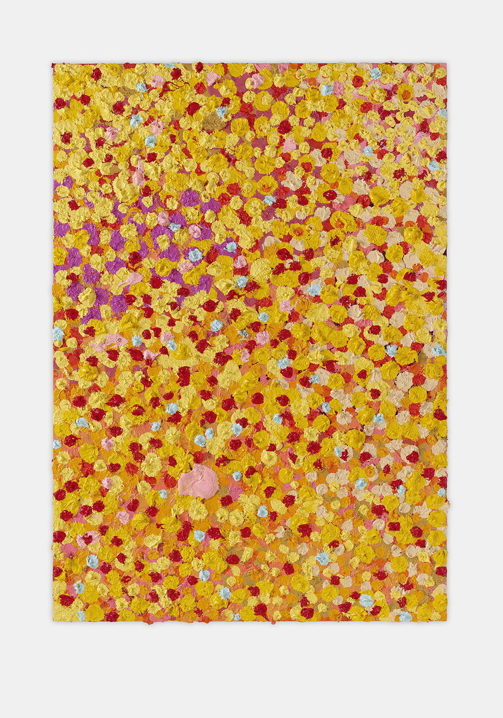 The Paper Veils are a series of 300 striking paintings on card completed in 2019, and available in two sizes. These paintings are a riotous ensemble of energetically coloured and thickly painted dots. Across each composition, Hirst revels in the joy of colour and the physicality of paint.