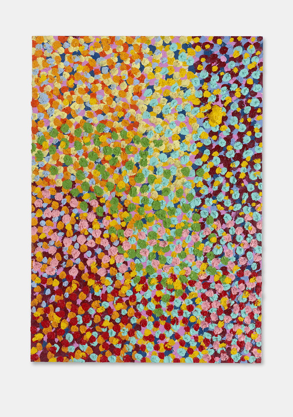 The Paper Veils are a series of 300 striking paintings on card completed in 2019, and available in two sizes. These paintings are a riotous ensemble of energetically coloured and thickly painted dots. Across each composition, Hirst revels in the joy of colour and the physicality of paint.