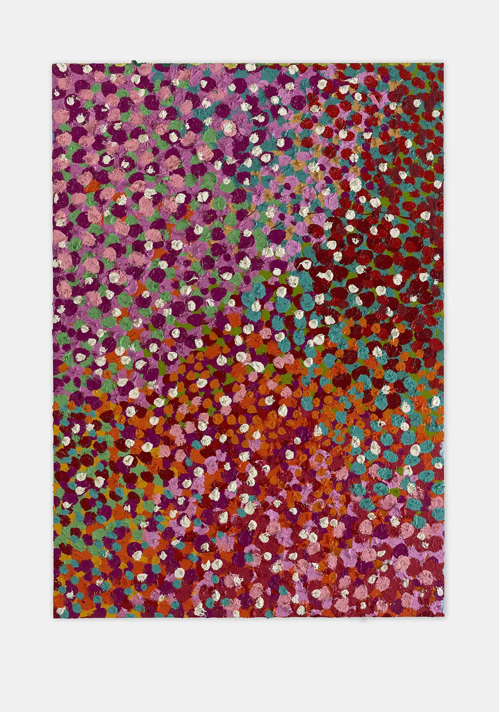 The Paper Veils are a series of 300 striking paintings on card completed in 2019, and available in two sizes. These paintings are a riotous ensemble of energetically coloured and thickly painted dots. Across each composition, Hirst revels in the joy of colour and the physicality of paint.