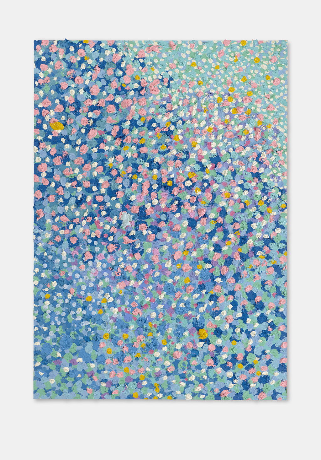 The Paper Veils are a series of 300 striking paintings on card completed in 2019, and available in two sizes. These paintings are a riotous ensemble of energetically coloured and thickly painted dots. Across each composition, Hirst revels in the joy of colour and the physicality of paint.