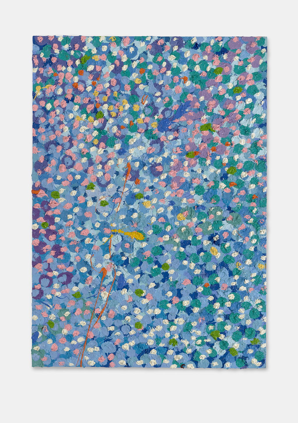 The Paper Veils are a series of 300 striking paintings on card completed in 2019, and available in two sizes. These paintings are a riotous ensemble of energetically coloured and thickly painted dots. Across each composition, Hirst revels in the joy of colour and the physicality of paint.