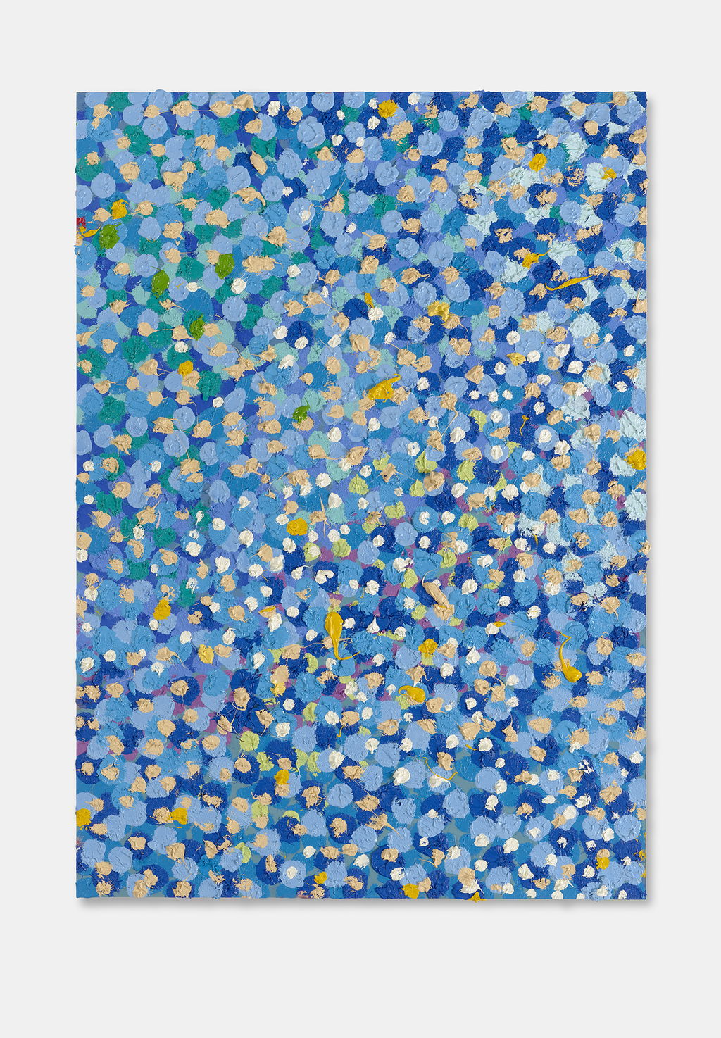 The Paper Veils are a series of 300 striking paintings on card completed in 2019, and available in two sizes. These paintings are a riotous ensemble of energetically coloured and thickly painted dots. Across each composition, Hirst revels in the joy of colour and the physicality of paint.