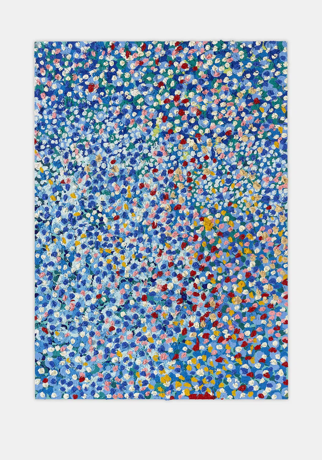 The Paper Veils are a series of 300 striking paintings on card completed in 2019, and available in two sizes. These paintings are a riotous ensemble of energetically coloured and thickly painted dots. Across each composition, Hirst revels in the joy of colour and the physicality of paint.