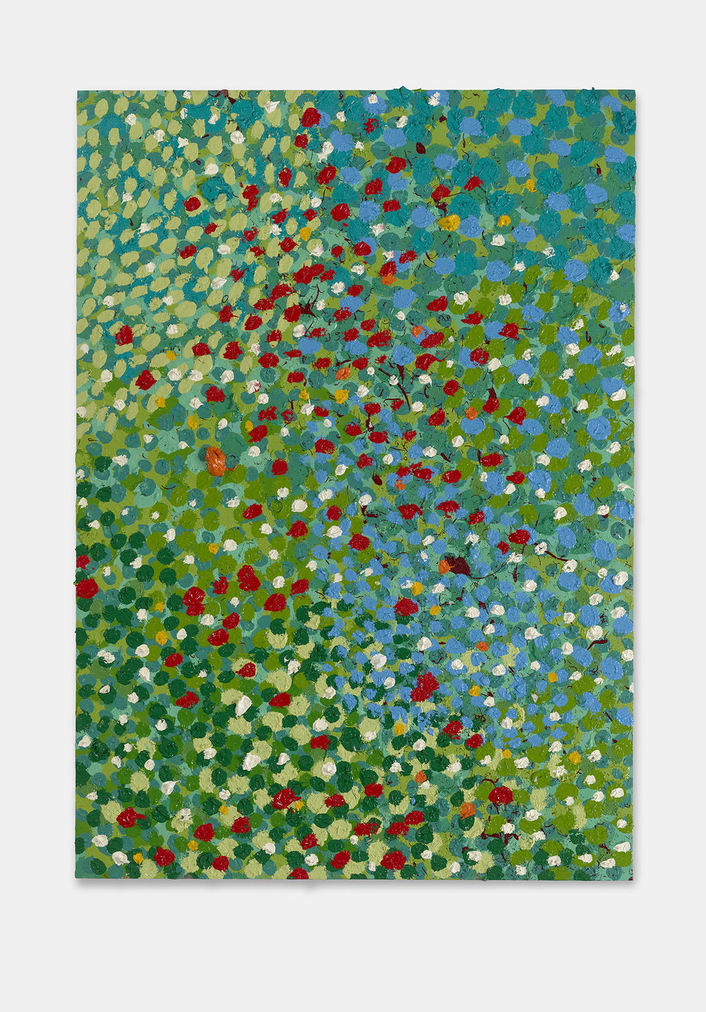The Paper Veils are a series of 300 striking paintings on card completed in 2019, and available in two sizes. These paintings are a riotous ensemble of energetically coloured and thickly painted dots. Across each composition, Hirst revels in the joy of colour and the physicality of paint.