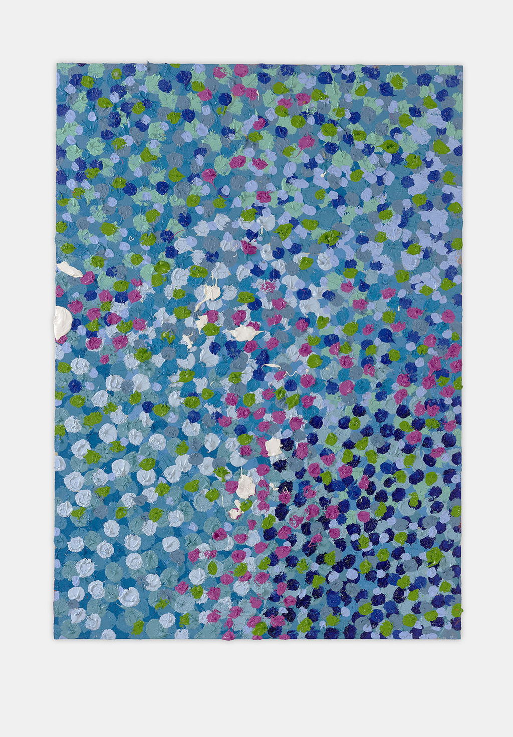 The Paper Veils are a series of 300 striking paintings on card completed in 2019, and available in two sizes. These paintings are a riotous ensemble of energetically coloured and thickly painted dots. Across each composition, Hirst revels in the joy of colour and the physicality of paint.