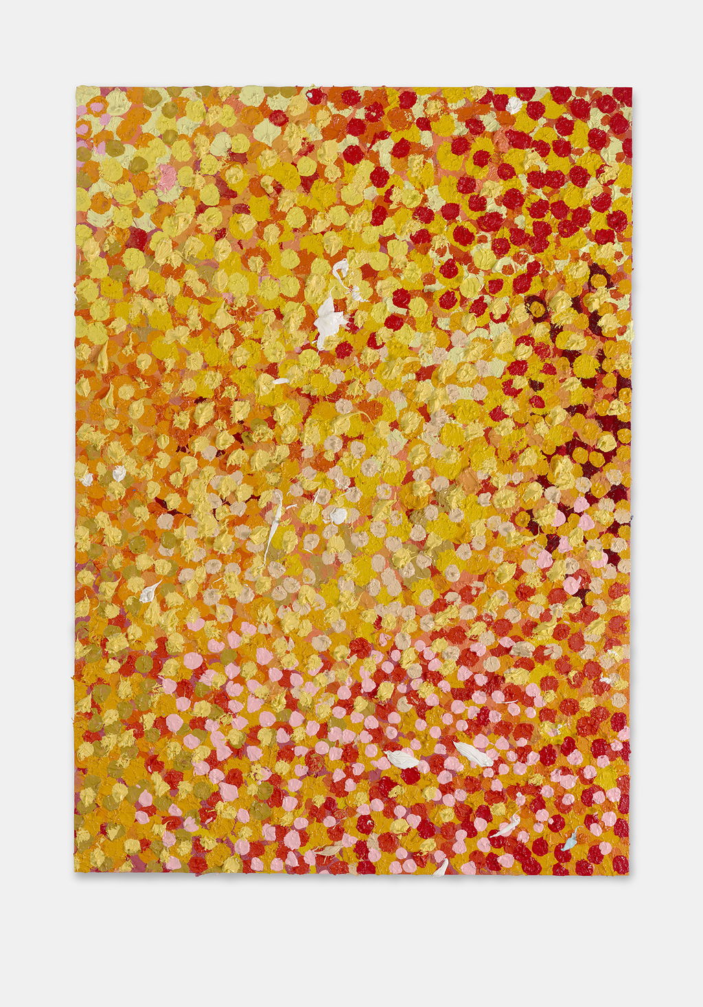 The Paper Veils are a series of 300 striking paintings on card completed in 2019, and available in two sizes. These paintings are a riotous ensemble of energetically coloured and thickly painted dots. Across each composition, Hirst revels in the joy of colour and the physicality of paint.