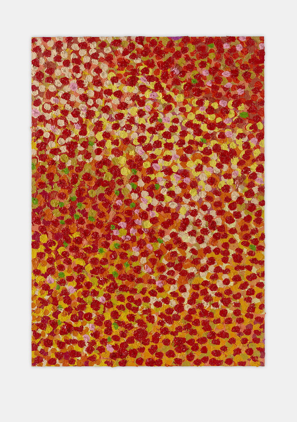 The Paper Veils are a series of 300 striking paintings on card completed in 2019, and available in two sizes. These paintings are a riotous ensemble of energetically coloured and thickly painted dots. Across each composition, Hirst revels in the joy of colour and the physicality of paint.