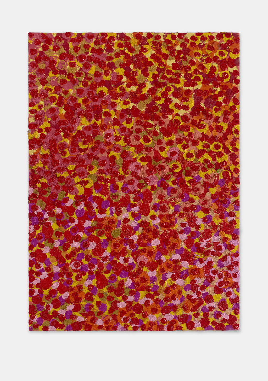 The Paper Veils are a series of 300 striking paintings on card completed in 2019, and available in two sizes. These paintings are a riotous ensemble of energetically coloured and thickly painted dots. Across each composition, Hirst revels in the joy of colour and the physicality of paint.