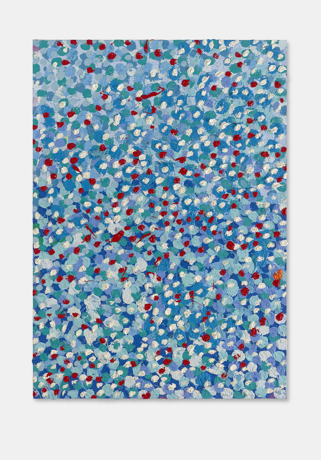 The Paper Veils are a series of 300 striking paintings on card completed in 2019, and available in two sizes. These paintings are a riotous ensemble of energetically coloured and thickly painted dots. Across each composition, Hirst revels in the joy of colour and the physicality of paint.
