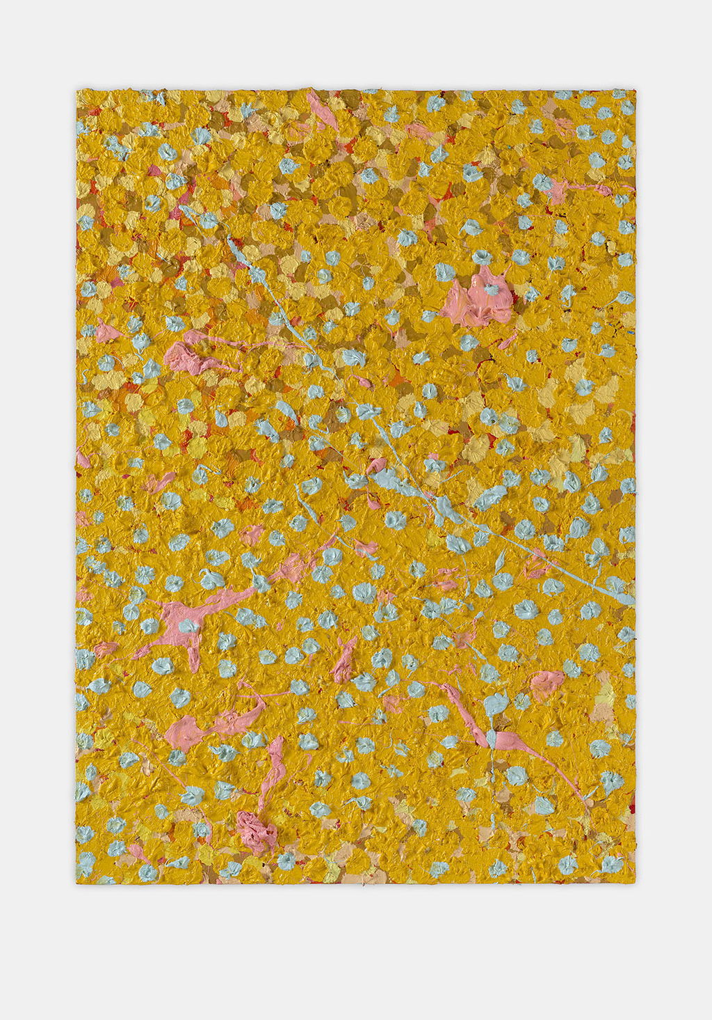 The Paper Veils are a series of 300 striking paintings on card completed in 2019, and available in two sizes. These paintings are a riotous ensemble of energetically coloured and thickly painted dots. Across each composition, Hirst revels in the joy of colour and the physicality of paint.