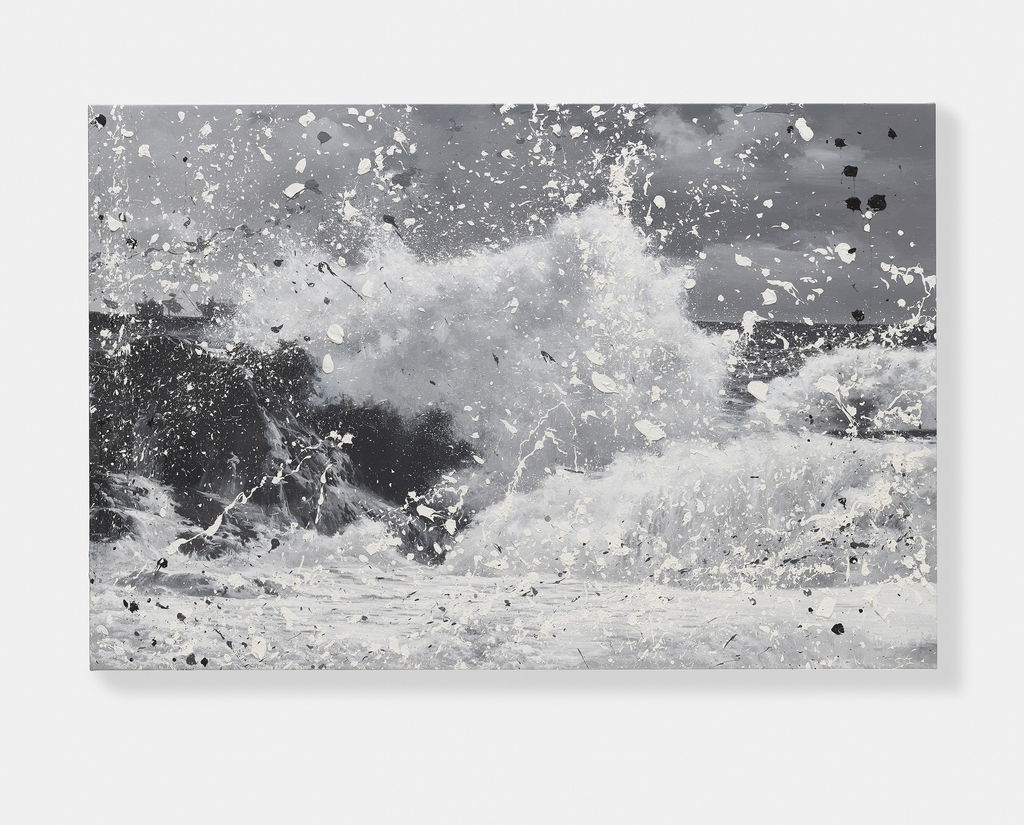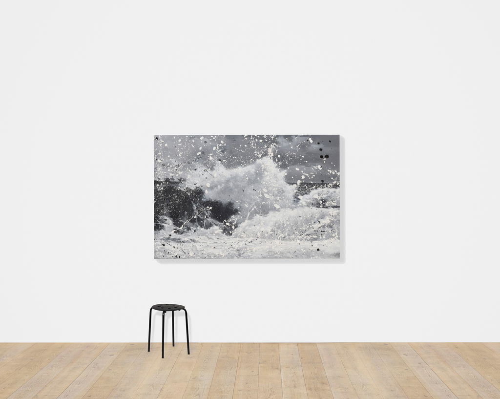 'Seascapes' uses the photorealistic scenes of ’Sea Paintings’ as the basis onto which Hirst creates additional and tactile layers of action through splattered paint.