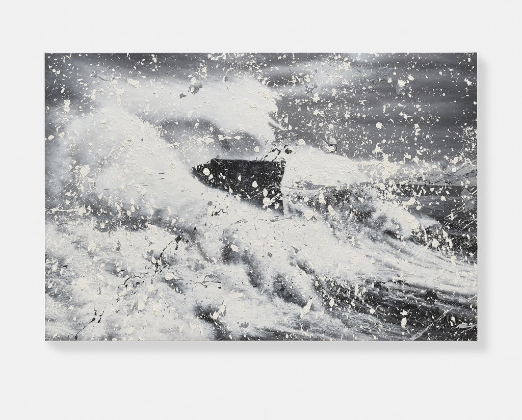 'Seascapes' uses the photorealistic scenes of ’Sea Paintings’ as the basis onto which Hirst creates additional and tactile layers of action through splattered paint.