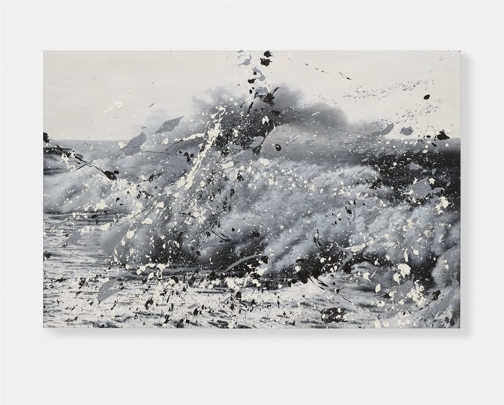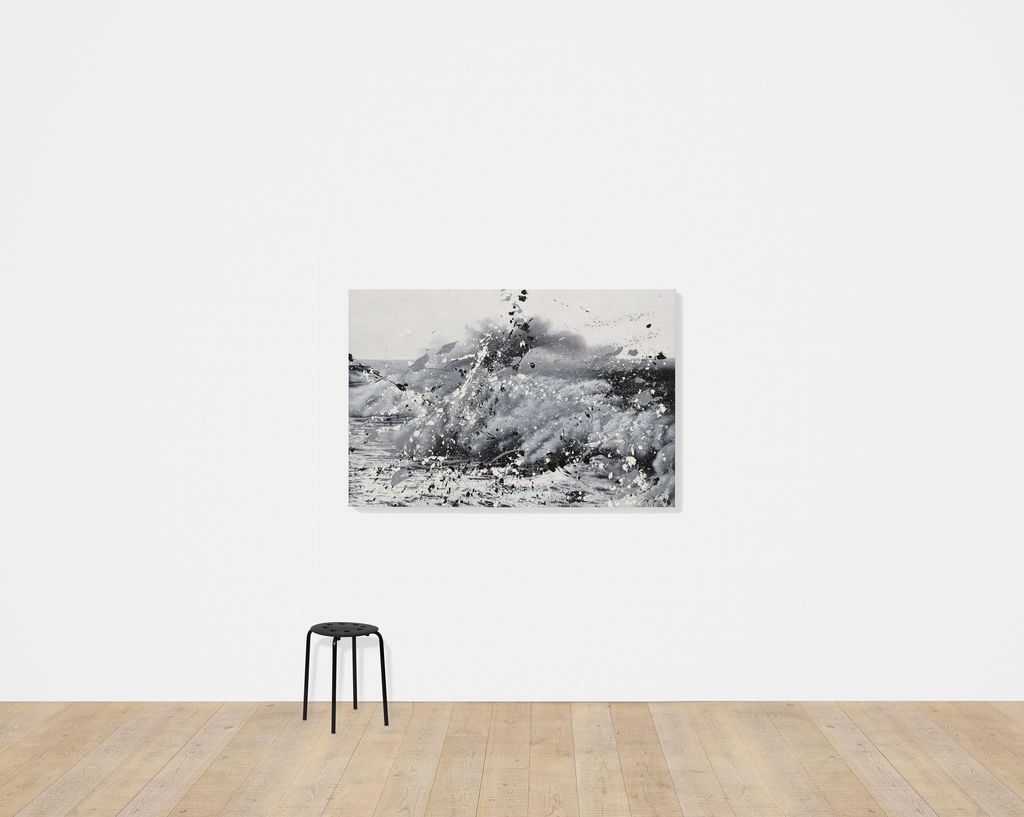 'Seascapes' uses the photorealistic scenes of ’Sea Paintings’ as the basis onto which Hirst creates additional and tactile layers of action through splattered paint.