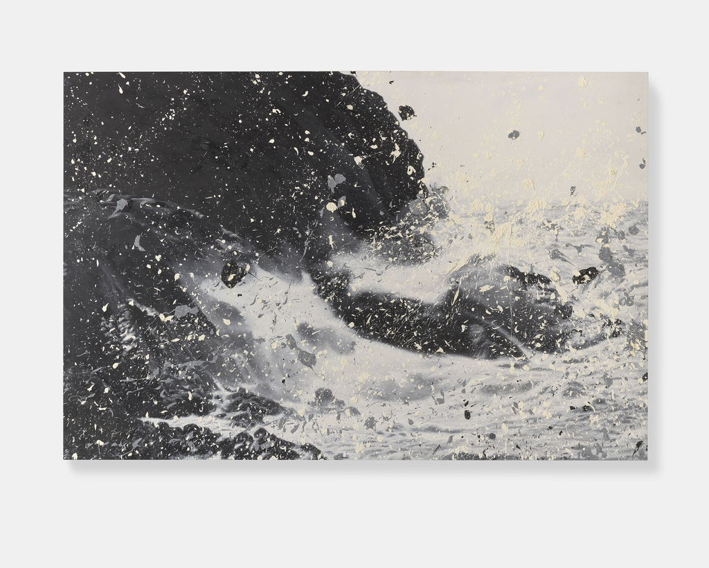 'Seascapes' uses the photorealistic scenes of ’Sea Paintings’ as the basis onto which Hirst creates additional and tactile layers of action through splattered paint.