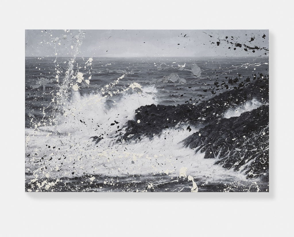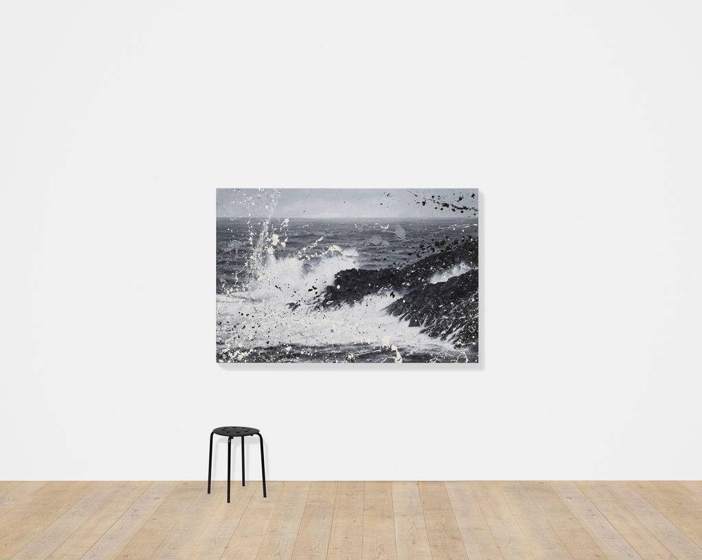 'Seascapes' uses the photorealistic scenes of ’Sea Paintings’ as the basis onto which Hirst creates additional and tactile layers of action through splattered paint.