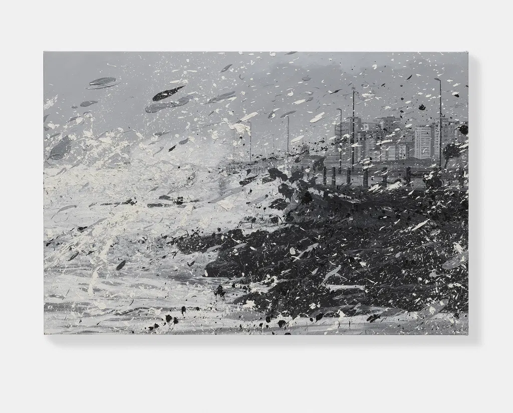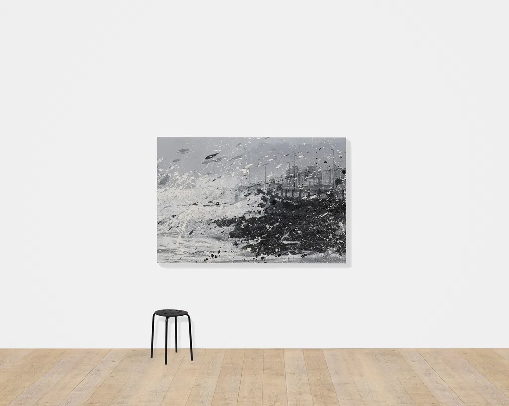 'Seascapes' uses the photorealistic scenes of ’Sea Paintings’ as the basis onto which Hirst creates additional and tactile layers of action through splattered paint.