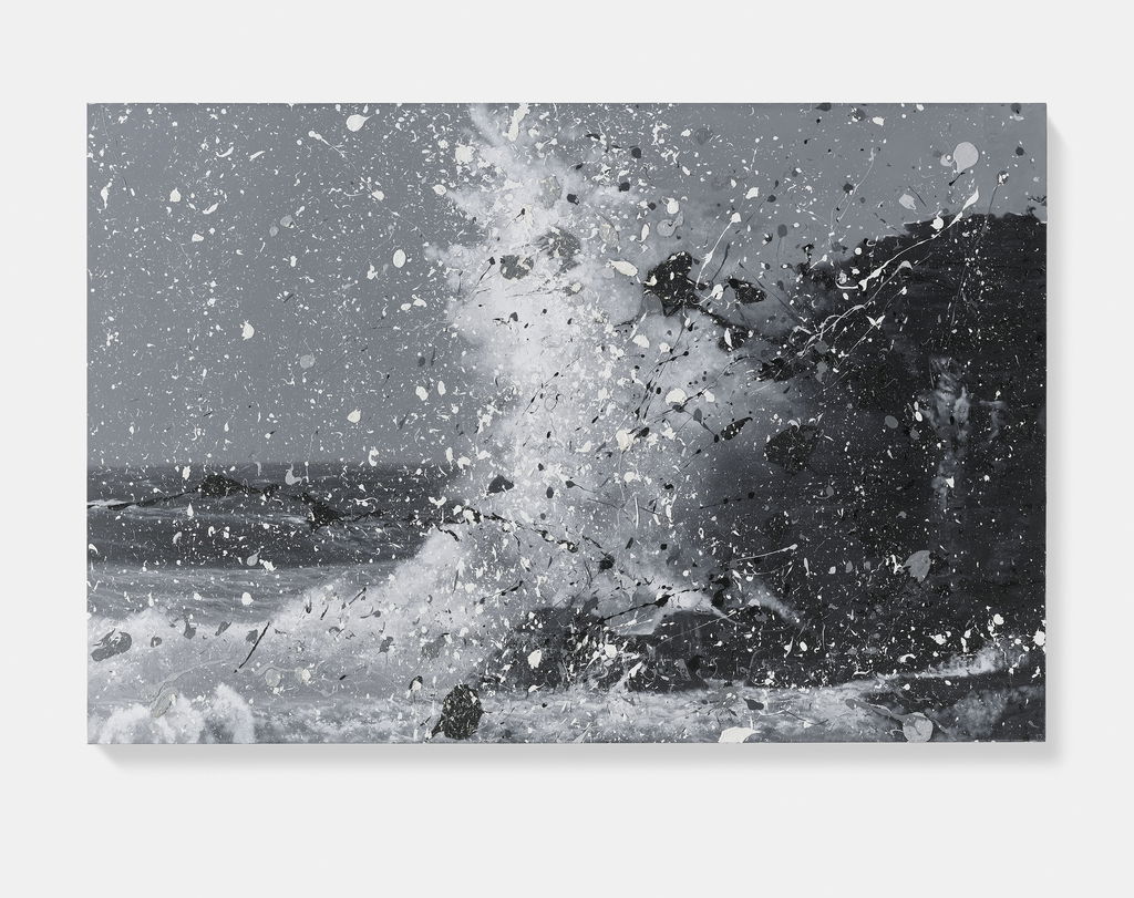'Seascapes' uses the photorealistic scenes of ’Sea Paintings’ as the basis onto which Hirst creates additional and tactile layers of action through splattered paint.