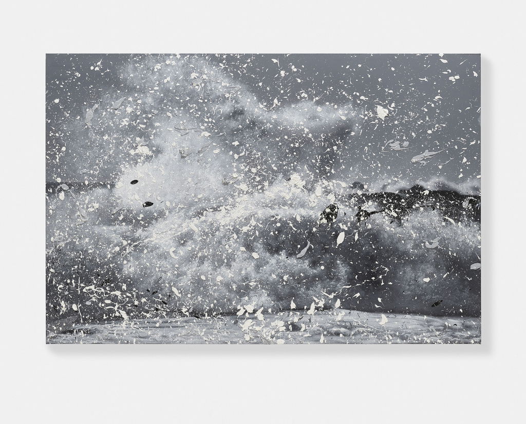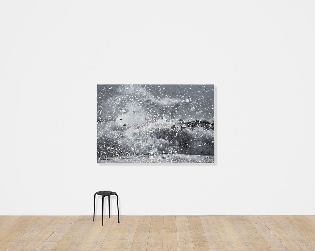 'Seascapes' uses the photorealistic scenes of ’Sea Paintings’ as the basis onto which Hirst creates additional and tactile layers of action through splattered paint.