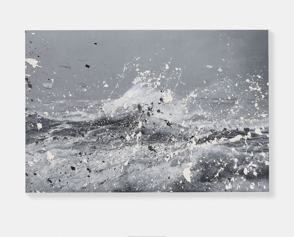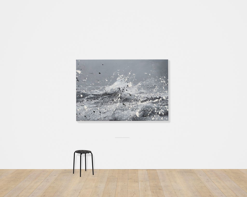 'Seascapes' uses the photorealistic scenes of ’Sea Paintings’ as the basis onto which Hirst creates additional and tactile layers of action through splattered paint.