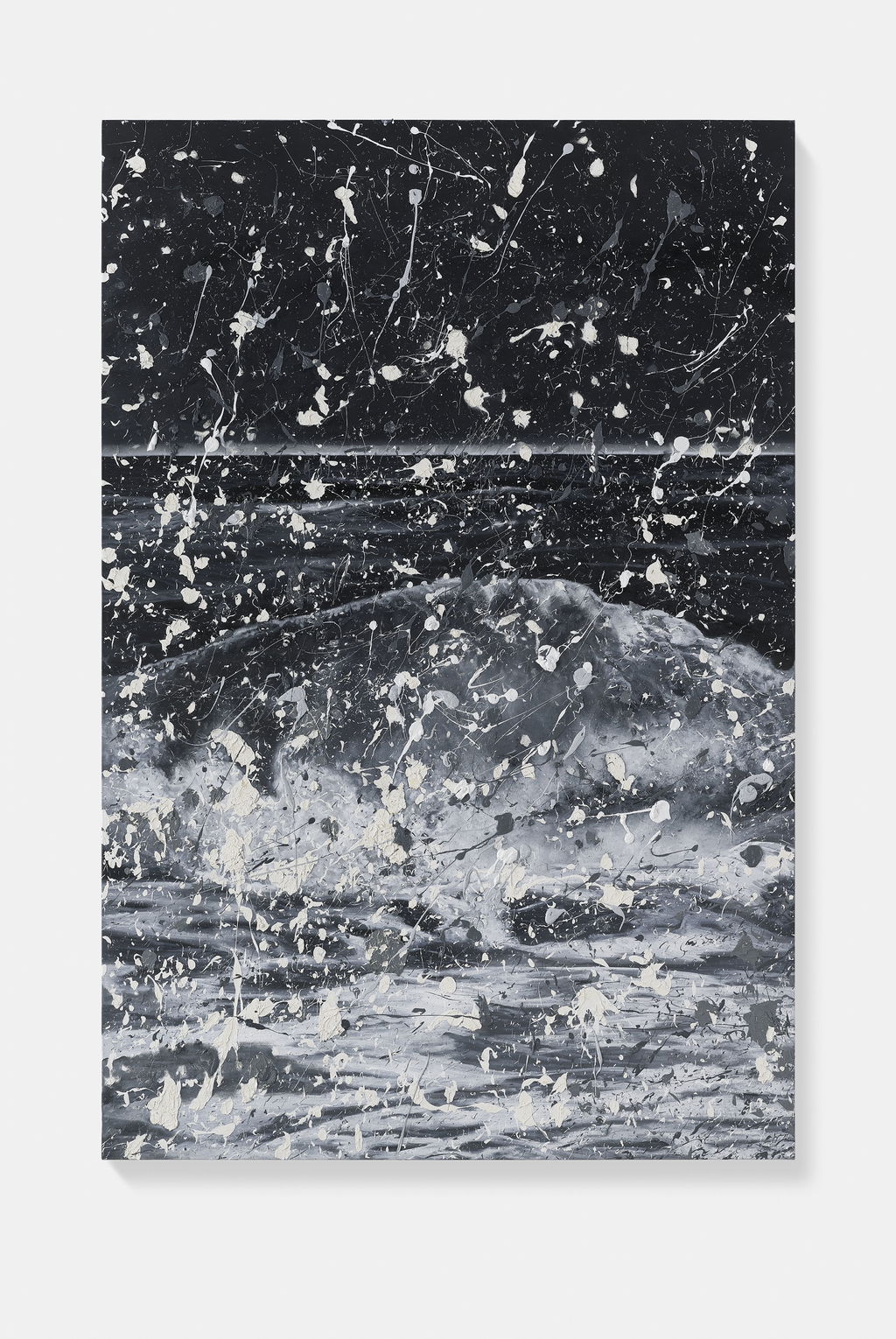 'Seascapes' uses the photorealistic scenes of ’Sea Paintings’ as the basis onto which Hirst creates additional and tactile layers of action through splattered paint.