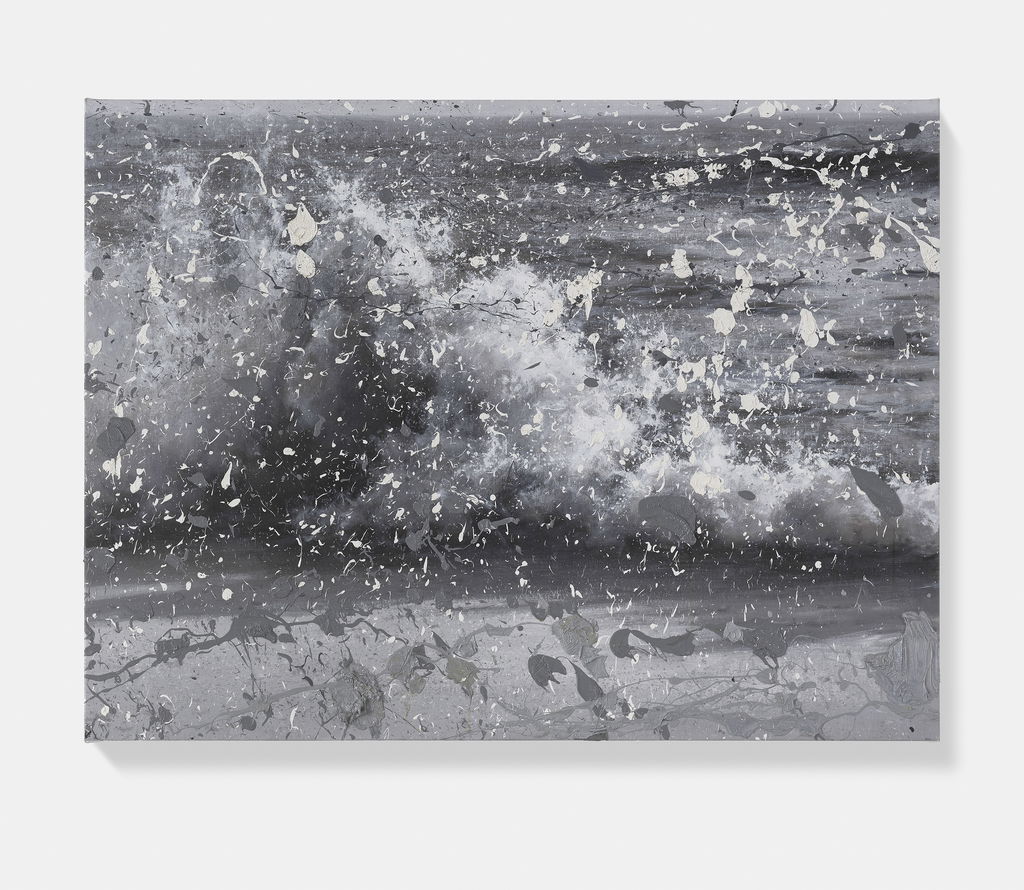 'Seascapes' uses the photorealistic scenes of ’Sea Paintings’ as the basis onto which Hirst creates additional and tactile layers of action through splattered paint.