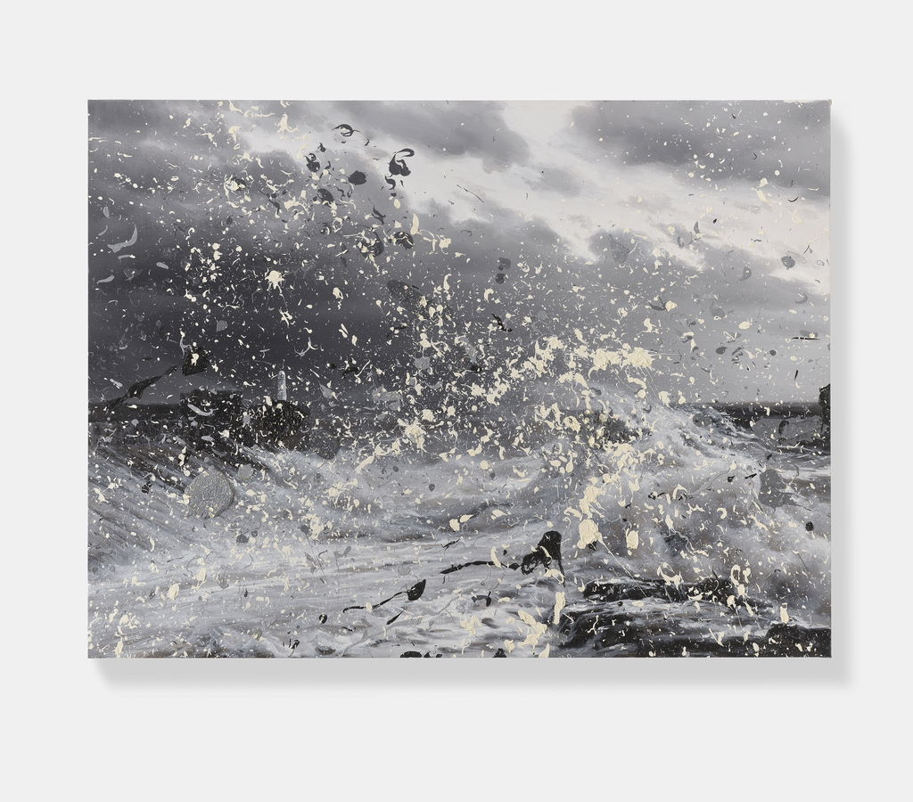 'Seascapes' uses the photorealistic scenes of ’Sea Paintings’ as the basis onto which Hirst creates additional and tactile layers of action through splattered paint.