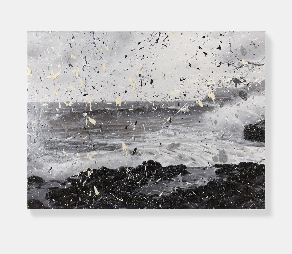 'Seascapes' uses the photorealistic scenes of ’Sea Paintings’ as the basis onto which Hirst creates additional and tactile layers of action through splattered paint.