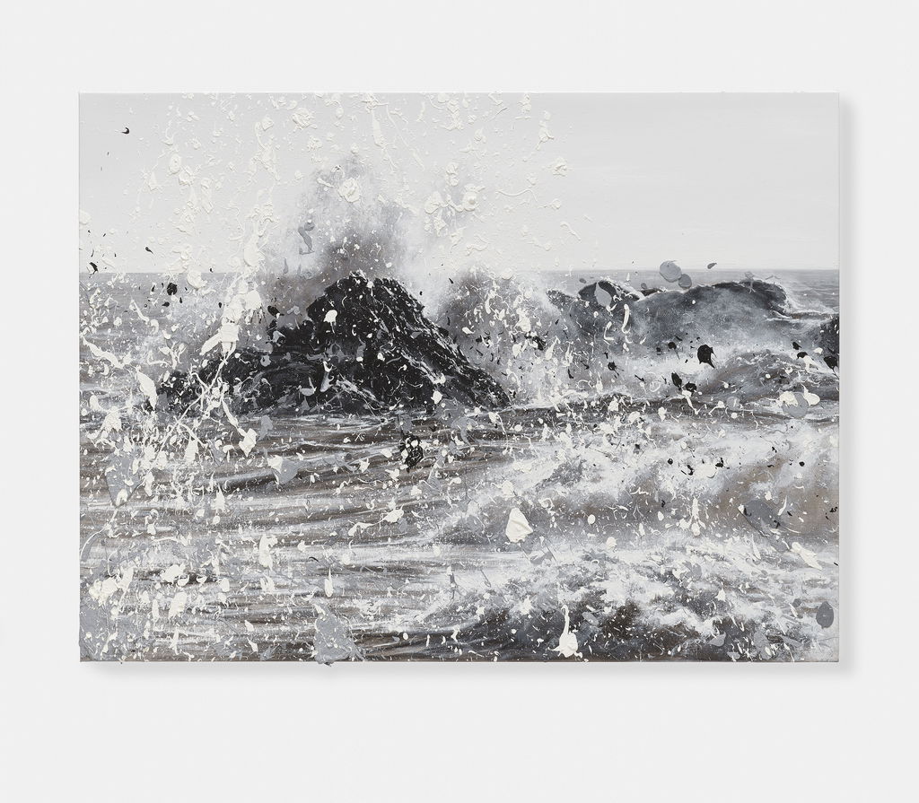 'Seascapes' uses the photorealistic scenes of ’Sea Paintings’ as the basis onto which Hirst creates additional and tactile layers of action through splattered paint.