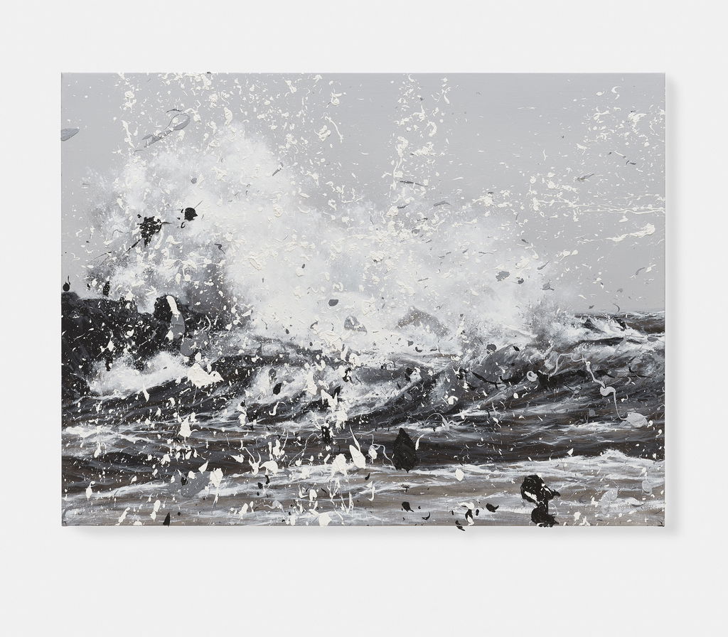 'Seascapes' uses the photorealistic scenes of ’Sea Paintings’ as the basis onto which Hirst creates additional and tactile layers of action through splattered paint.