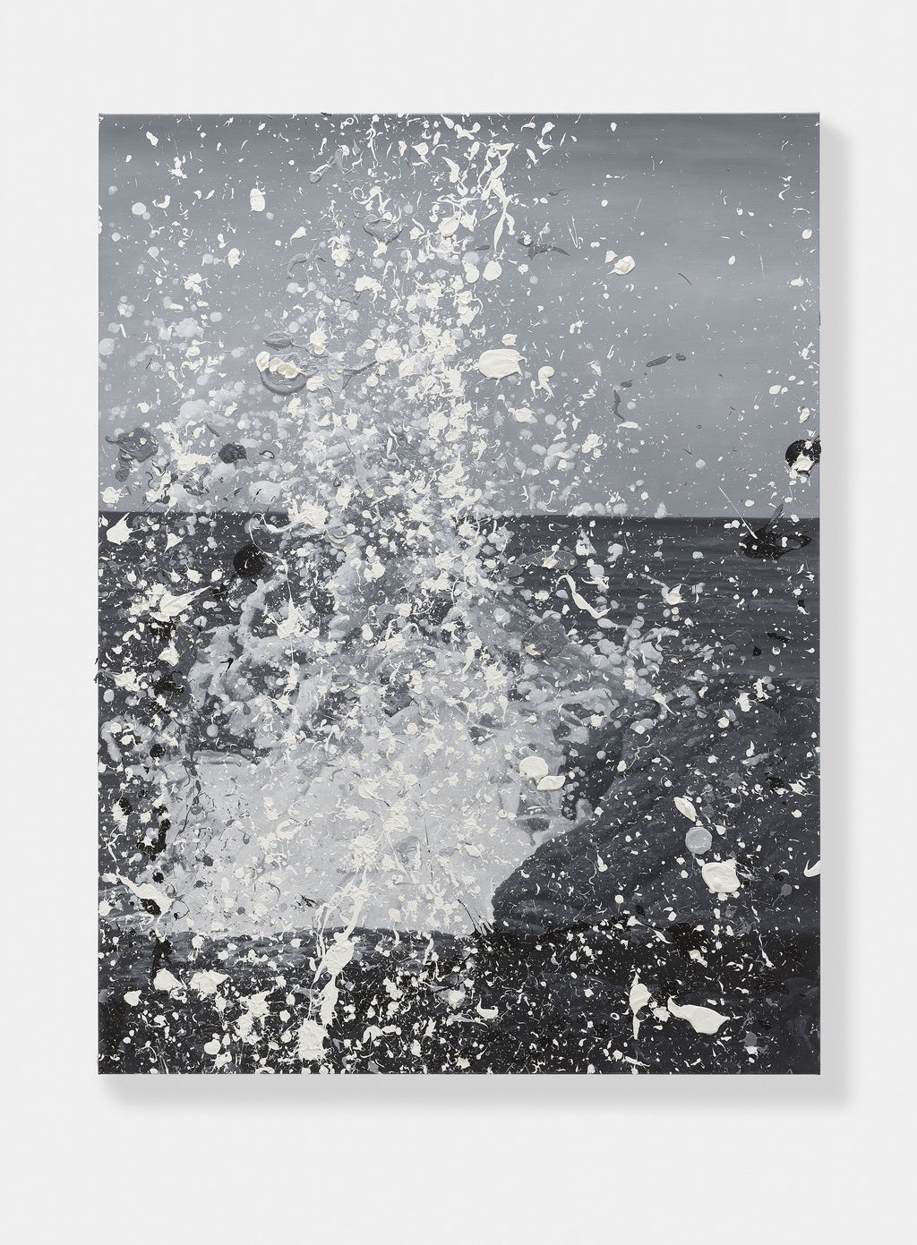 'Seascapes' uses the photorealistic scenes of ’Sea Paintings’ as the basis onto which Hirst creates additional and tactile layers of action through splattered paint.