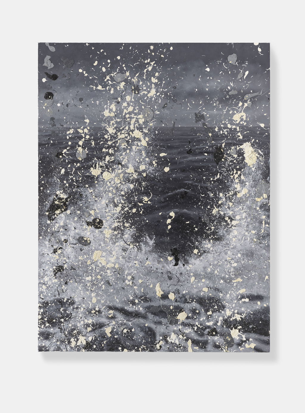 'Seascapes' uses the photorealistic scenes of ’Sea Paintings’ as the basis onto which Hirst creates additional and tactile layers of action through splattered paint.