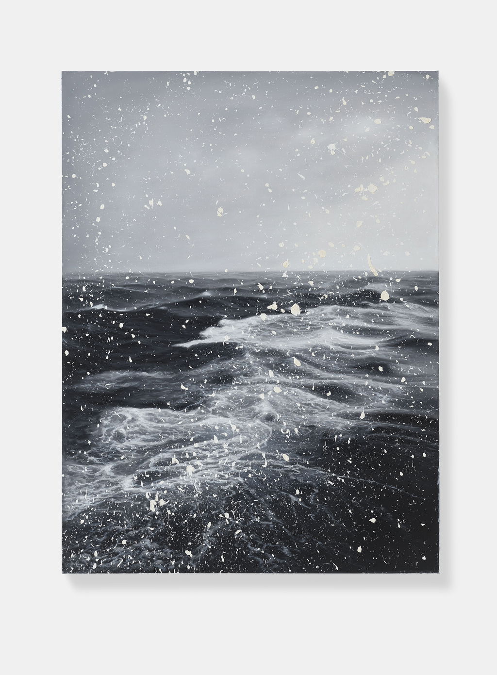 'Seascapes' uses the photorealistic scenes of ’Sea Paintings’ as the basis onto which Hirst creates additional and tactile layers of action through splattered paint.