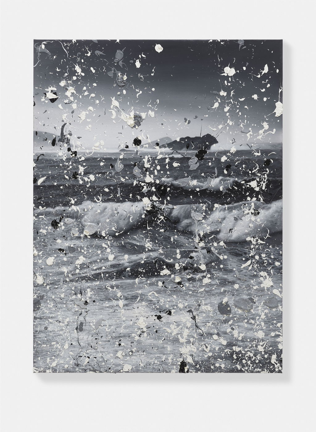 'Seascapes' uses the photorealistic scenes of ’Sea Paintings’ as the basis onto which Hirst creates additional and tactile layers of action through splattered paint.