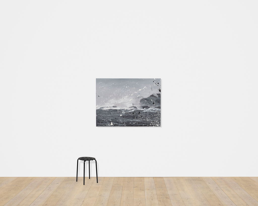 'Seascapes' uses the photorealistic scenes of ’Sea Paintings’ as the basis onto which Hirst creates additional and tactile layers of action through splattered paint.