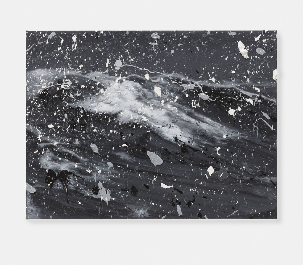 'Seascapes' uses the photorealistic scenes of ’Sea Paintings’ as the basis onto which Hirst creates additional and tactile layers of action through splattered paint.