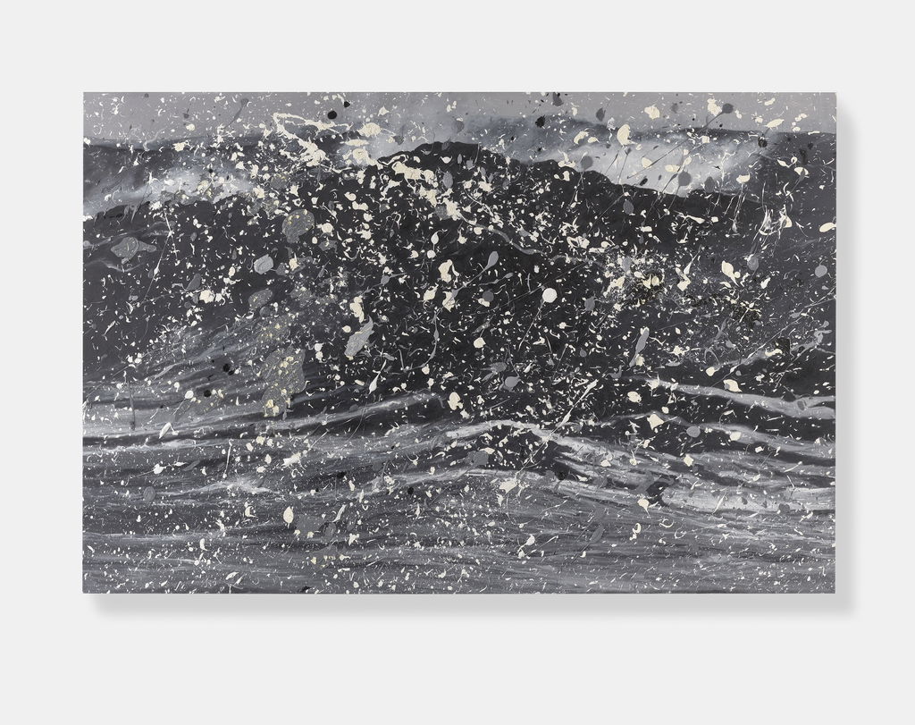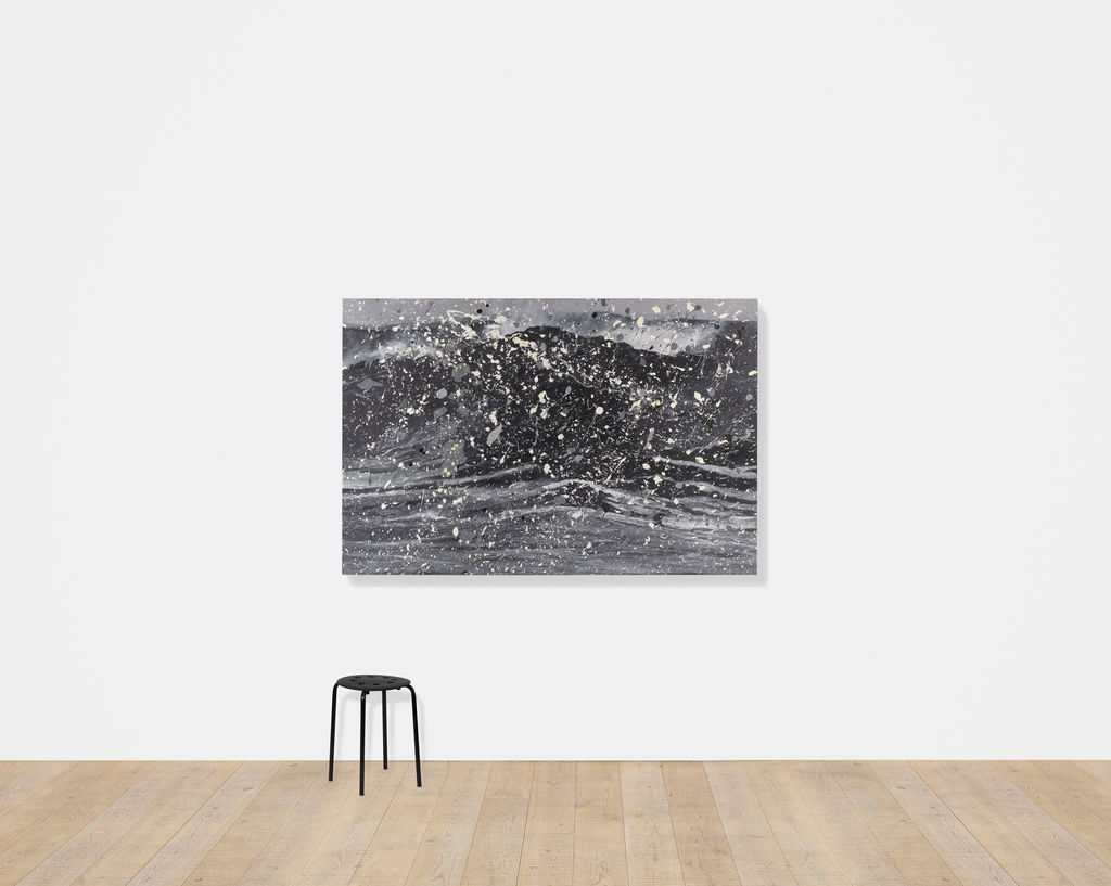 'Seascapes' uses the photorealistic scenes of ’Sea Paintings’ as the basis onto which Hirst creates additional and tactile layers of action through splattered paint.