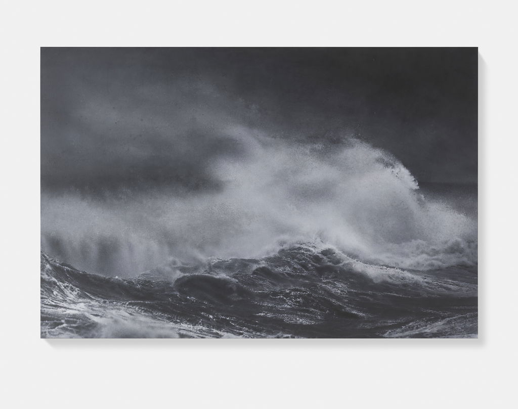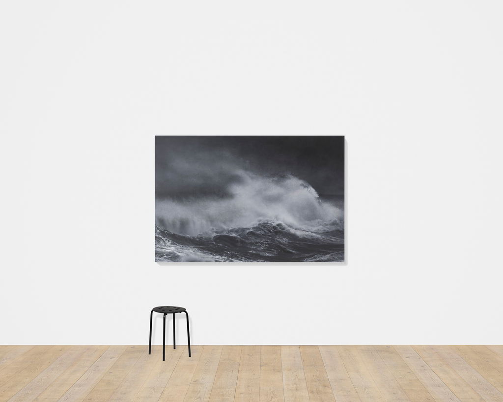 'Sea Paintings' marks the latest iteration in Hirst’s long-established practice of producing paintings after photographs, and freezes in greyscale the power and energy of coastal storms.