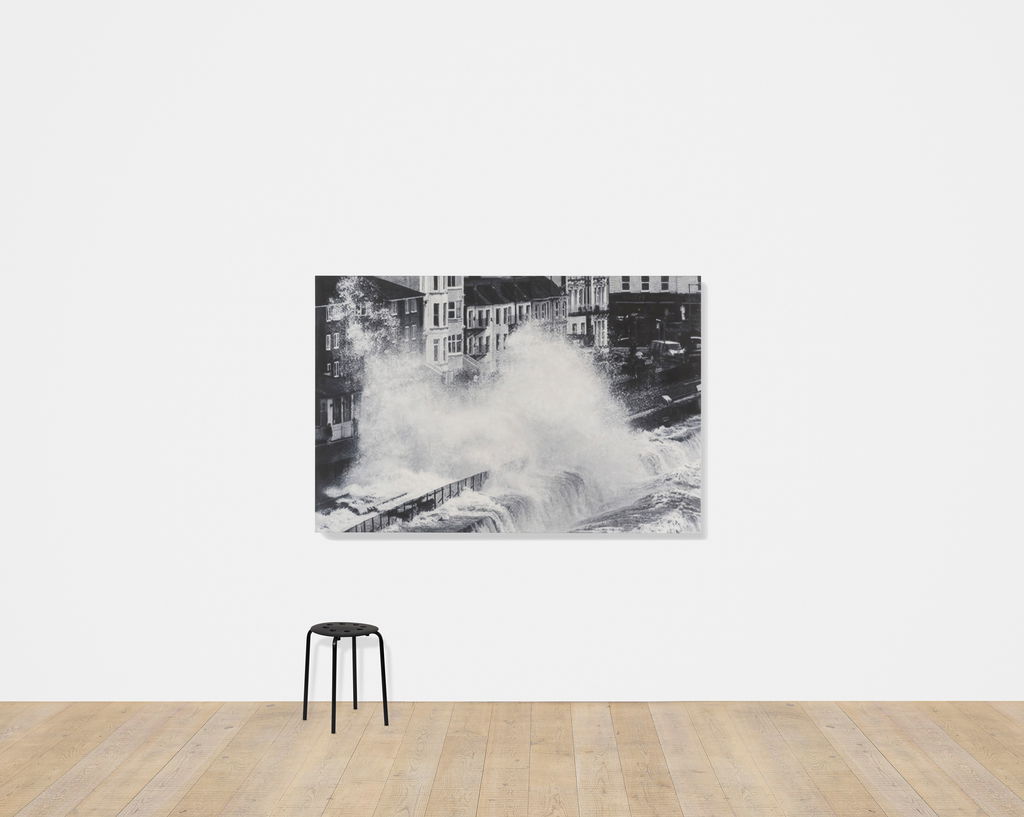 'Sea Paintings' marks the latest iteration in Hirst’s long-established practice of producing paintings after photographs, and freezes in greyscale the power and energy of coastal storms.
