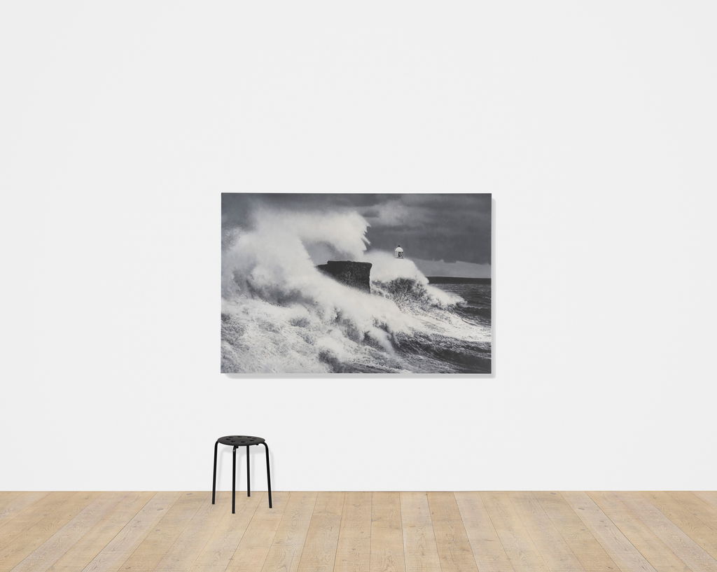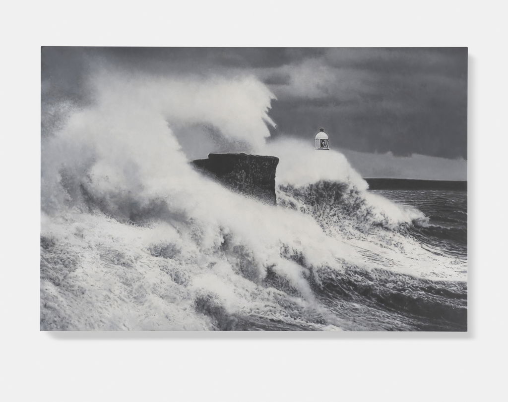 'Sea Paintings' marks the latest iteration in Hirst’s long-established practice of producing paintings after photographs, and freezes in greyscale the power and energy of coastal storms.