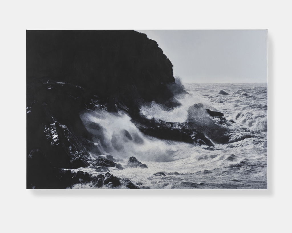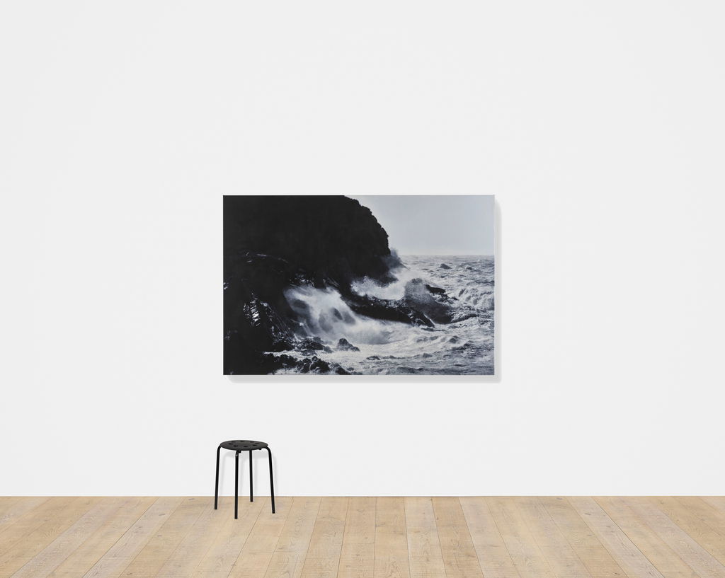 'Sea Paintings' marks the latest iteration in Hirst’s long-established practice of producing paintings after photographs, and freezes in greyscale the power and energy of coastal storms.