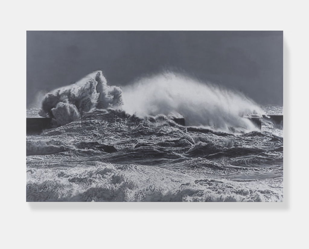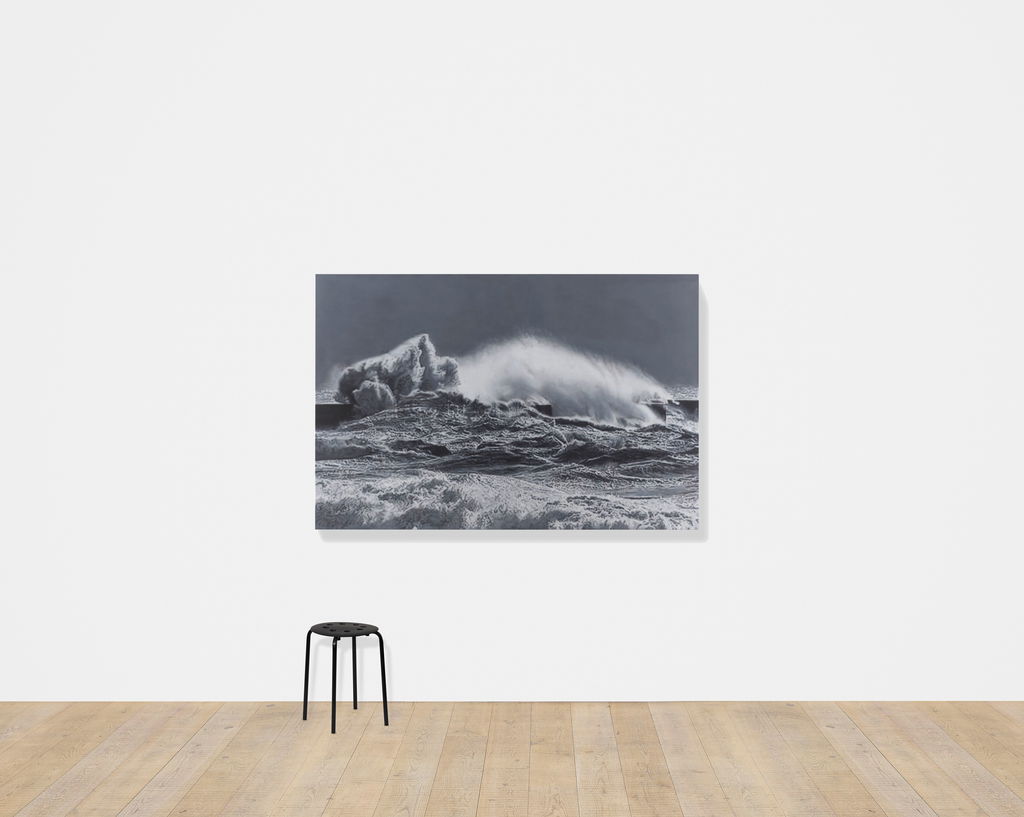 'Sea Paintings' marks the latest iteration in Hirst’s long-established practice of producing paintings after photographs, and freezes in greyscale the power and energy of coastal storms.