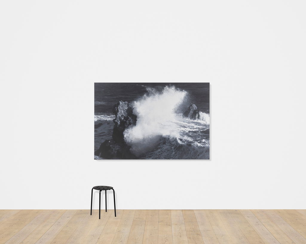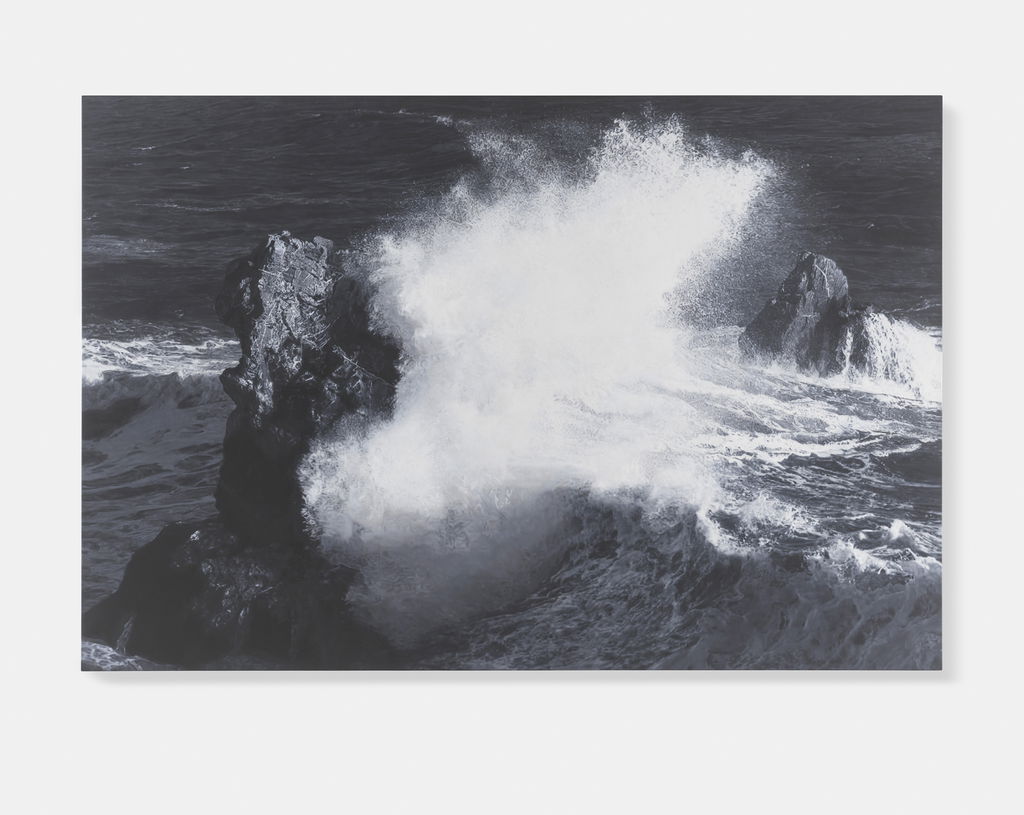 'Sea Paintings' marks the latest iteration in Hirst’s long-established practice of producing paintings after photographs, and freezes in greyscale the power and energy of coastal storms.