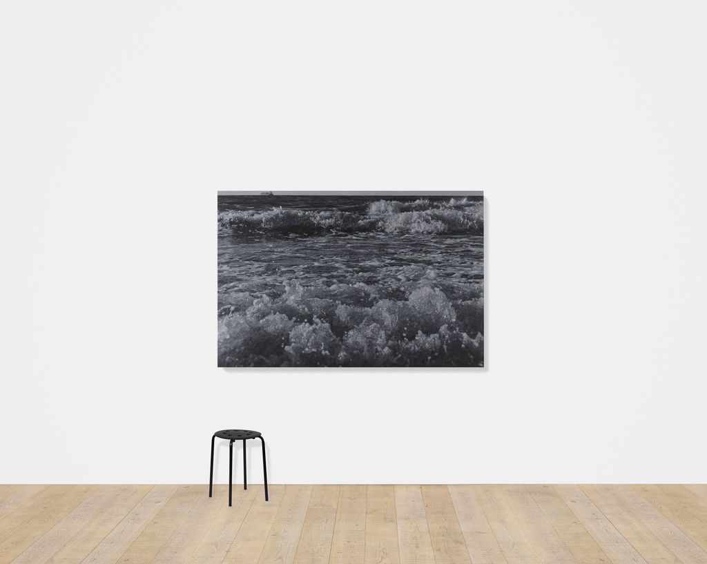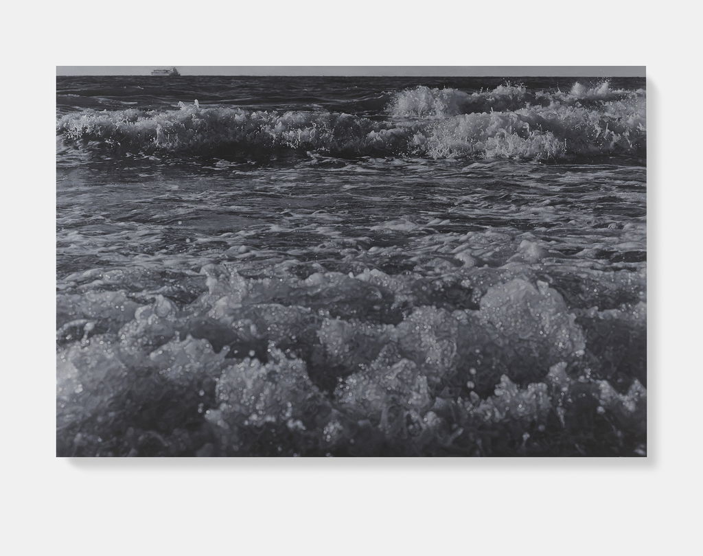 'Sea Paintings' marks the latest iteration in Hirst’s long-established practice of producing paintings after photographs, and freezes in greyscale the power and energy of coastal storms.