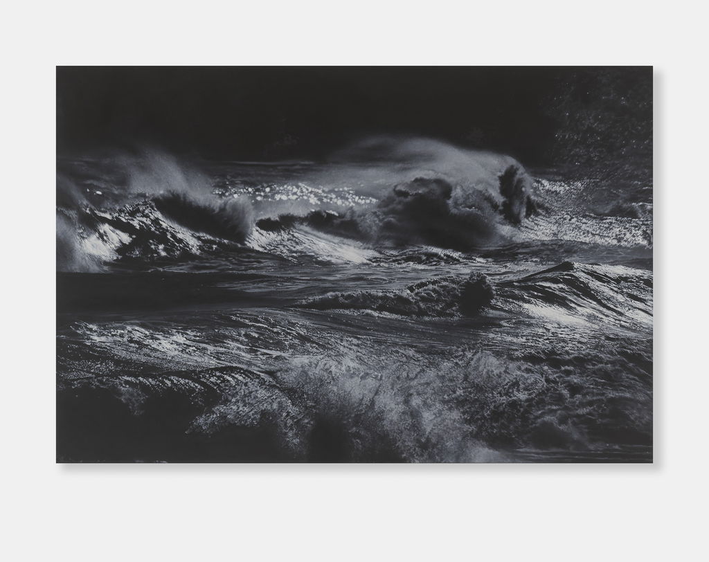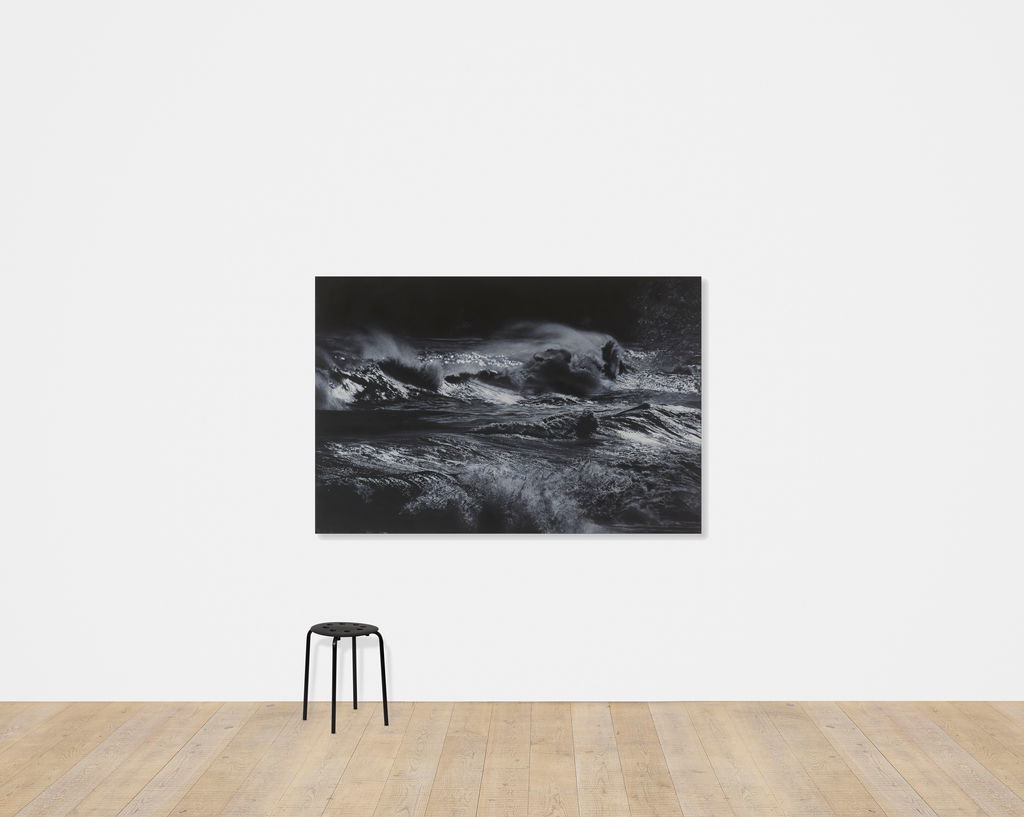 'Sea Paintings' marks the latest iteration in Hirst’s long-established practice of producing paintings after photographs, and freezes in greyscale the power and energy of coastal storms.