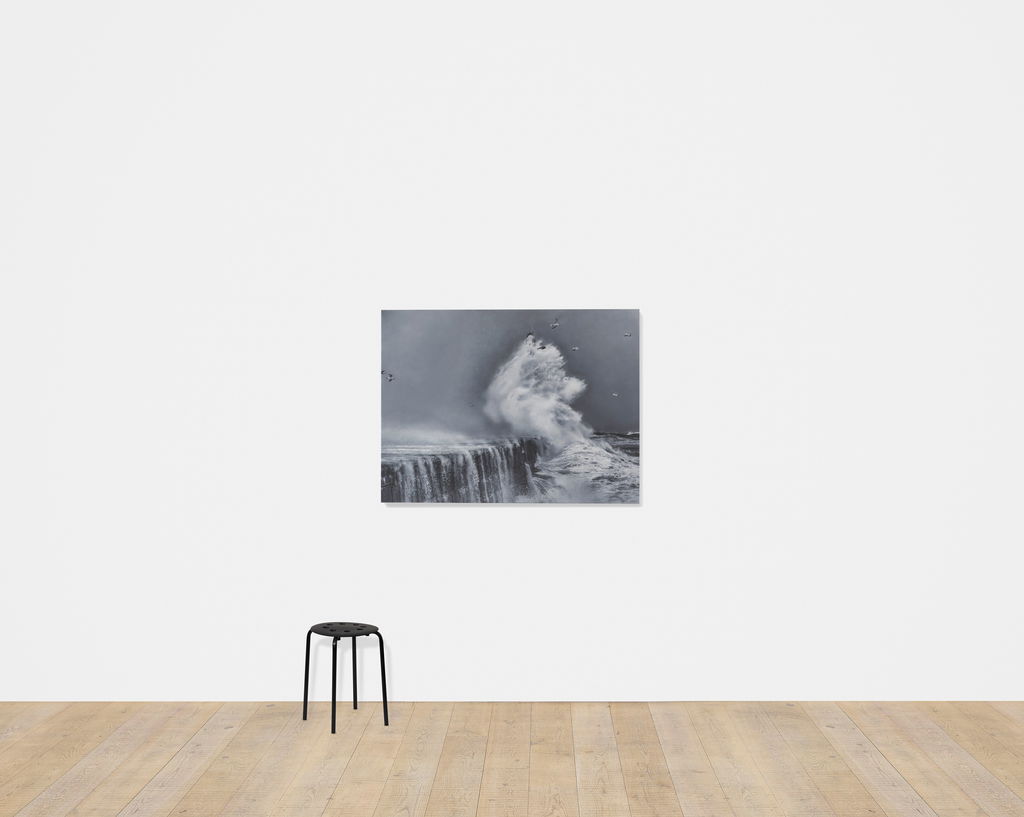 'Sea Paintings' marks the latest iteration in Hirst’s long-established practice of producing paintings after photographs, and freezes in greyscale the power and energy of coastal storms.
