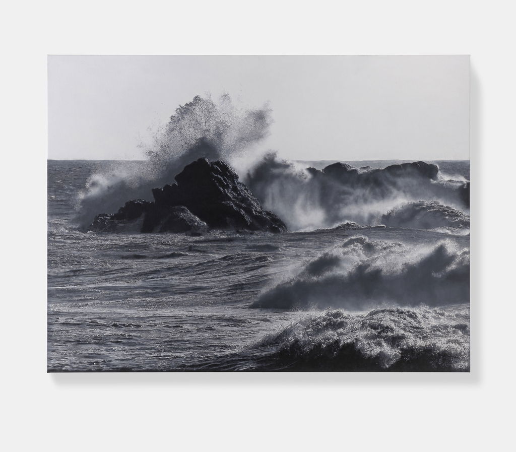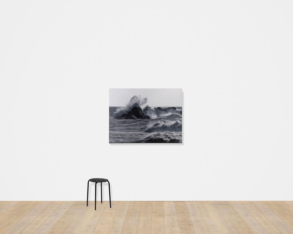 'Sea Paintings' marks the latest iteration in Hirst’s long-established practice of producing paintings after photographs, and freezes in greyscale the power and energy of coastal storms.