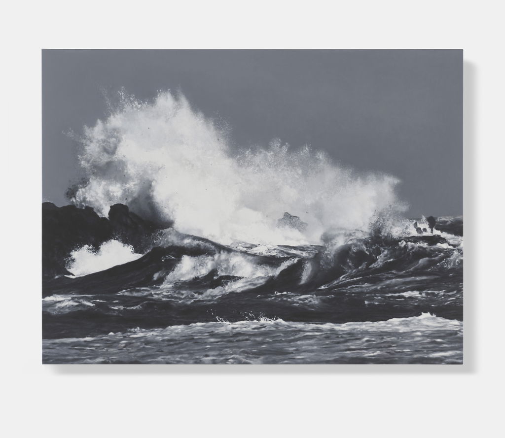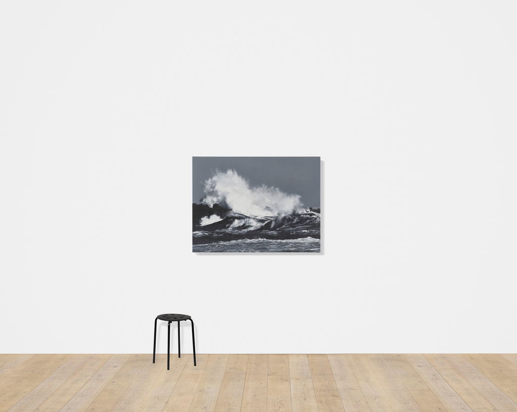 'Sea Paintings' marks the latest iteration in Hirst’s long-established practice of producing paintings after photographs, and freezes in greyscale the power and energy of coastal storms.
