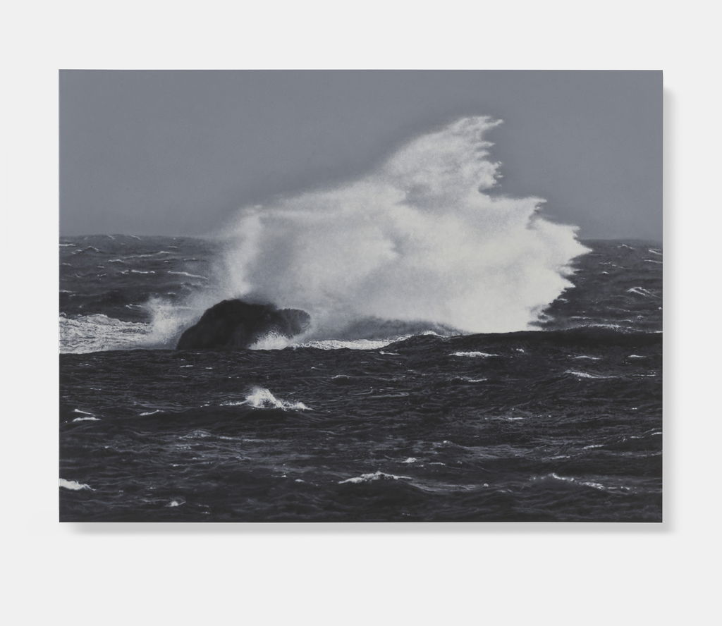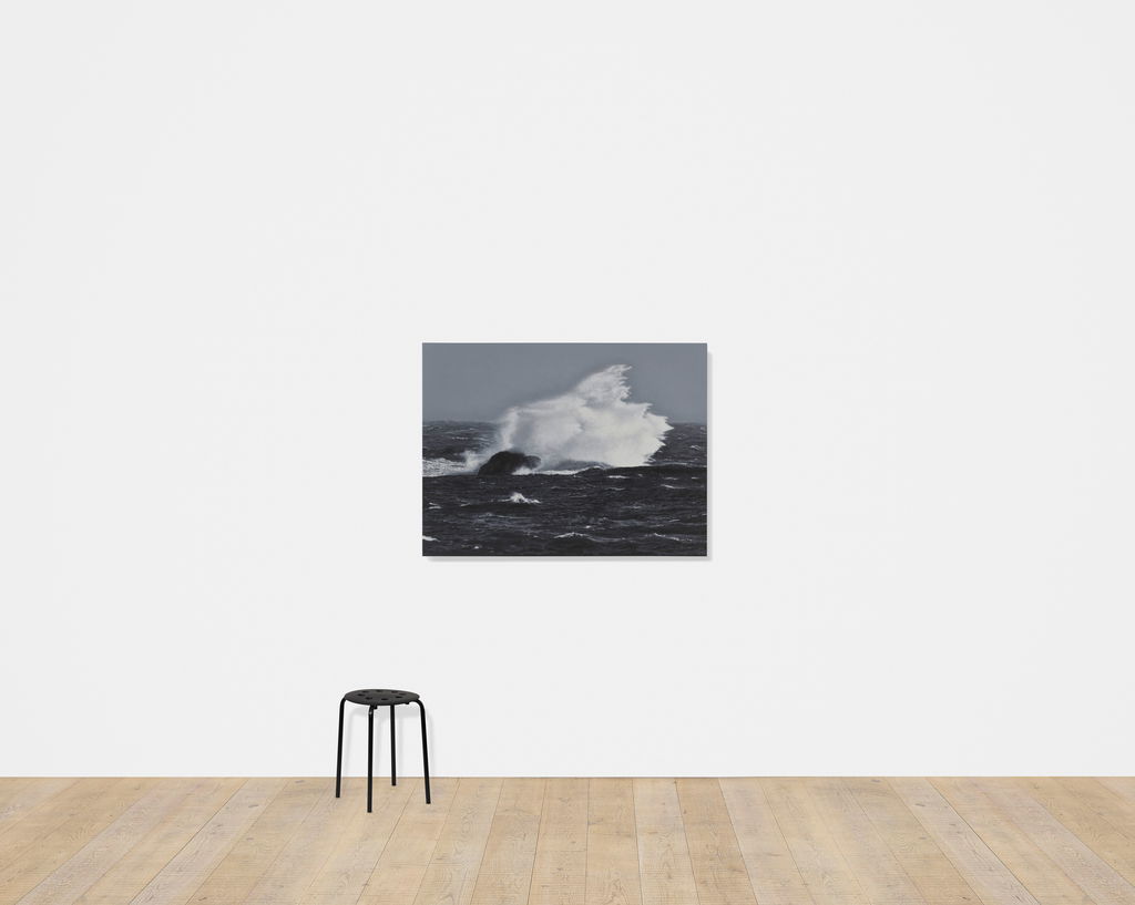 'Sea Paintings' marks the latest iteration in Hirst’s long-established practice of producing paintings after photographs, and freezes in greyscale the power and energy of coastal storms.