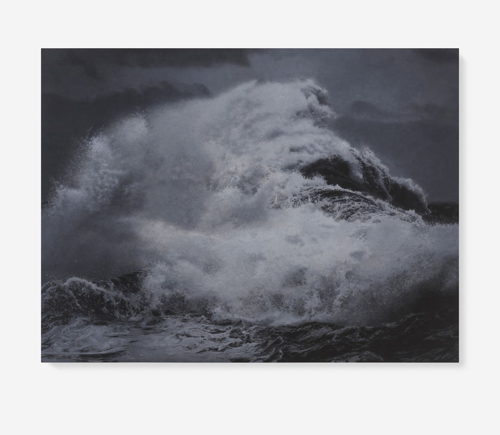 'Sea Paintings' marks the latest iteration in Hirst’s long-established practice of producing paintings after photographs, and freezes in greyscale the power and energy of coastal storms.