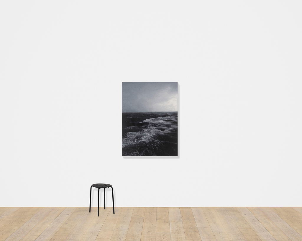 'Sea Paintings' marks the latest iteration in Hirst’s long-established practice of producing paintings after photographs, and freezes in greyscale the power and energy of coastal storms.